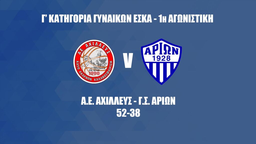 Η ομάδα μπάσκετ γυναικών του Αρίωνα έκανε πρεμιέρα στην Γ’ ΕΣΚΑ γυναικών, όπου στην εκτός έδρας αναμέτρηση με τον Αχιλλέα γνώρισε την ήττα με 52-38, πολύ πιο δύσκολα από ότι δείχνει το τελικό σκορ.