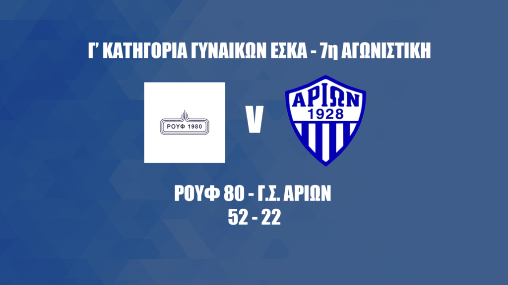 Βαριά ήττα από το Ρουφ 80 με 52-22 γνώρισε ο Αρίων στο πλαίσιο της 7ης αγωνιστικής, με τις μπλε να πληρώνουν για μια ακόμα φορά την αστοχία τους.